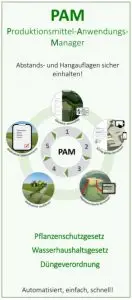 Nicht zuletzt besteht die Hoffnung über die visuelle Darstellung eine Diskussion anzuregen, die die praktische Umsetzung der verschiedenen Verordnungen und vor allem die rechtssichere Anwendung von PAM thematisiert. Die Einbindung verantwortlicher Stellen in die Weiterentwicklung des PAM-Services ist daher ein fester Bestandteil des Projekts und bildet ein eigenständiges Arbeitspaket. Können im Rahmen der Diskussion Lösungen gefunden werden, kann PAM ein effektiver und herstellerunabhängiger Web-Service zur Beratung, Planung, Kontrolle, Ausführung und Dokumentation von Dünge und Pflanzenschutzmaßnahmen werden.