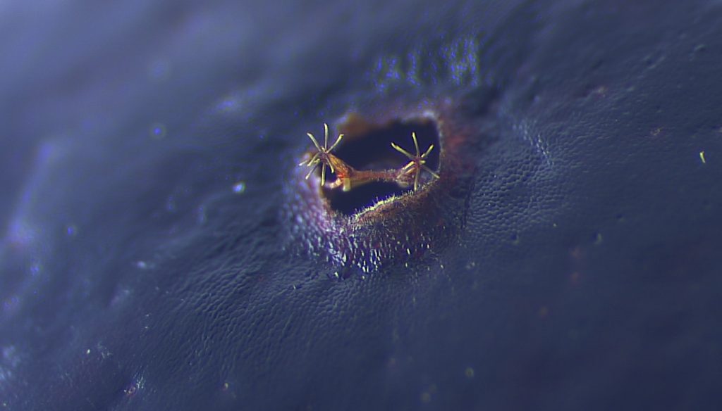 D. suzukii im Puppenstadium in einer Holunderbeere  (Foto: Mandy Püffeld, LTZ)