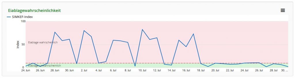 Ergebnisgrafik zur täglichen Eiablagewahrscheinlichkeit des EHS SIMKEF